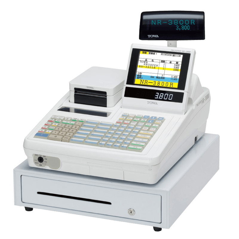 お客様側には、見やすいフルドットカスタマディスプレイを搭載。フルドット表示だからできる、複数行表示(3段・2段の選択が可能)と漢字表示を実現。お客様が、品名、金額などを瞬時に確認できるため、円滑な接客が実現できます。
