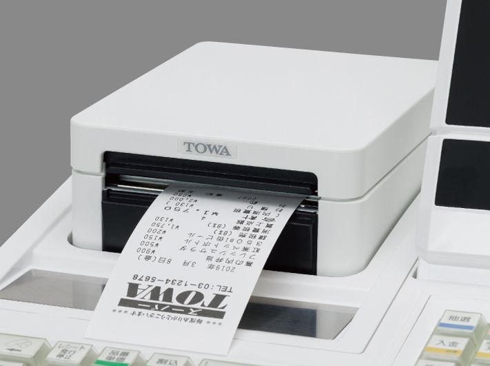 レジスターとしては業界初となる前方排出型の超高速サーマルプリンタを搭載。