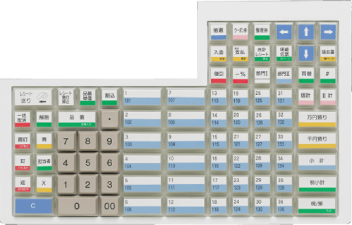 細やかな売上管理を実現する36部門のキーレイアウト※1。